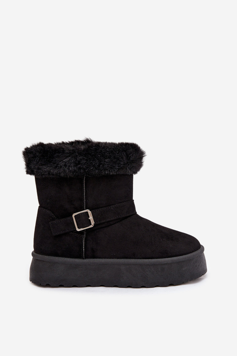Melni sieviešu sniega zābaki ar platformu, sprādzēm un kažoku Jesella