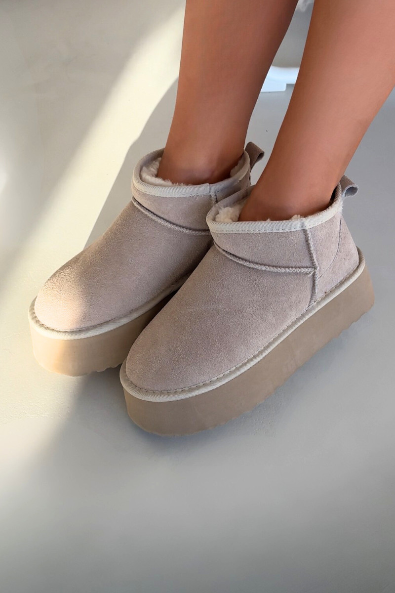 Smilšu krāsas sieviešu sniega zābaki no mākslīgās zamšas Irene