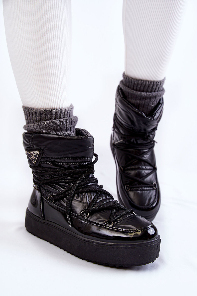 Sieviešu stilīgi sniega zābaki ar aukliņām melnā krāsā Carrios