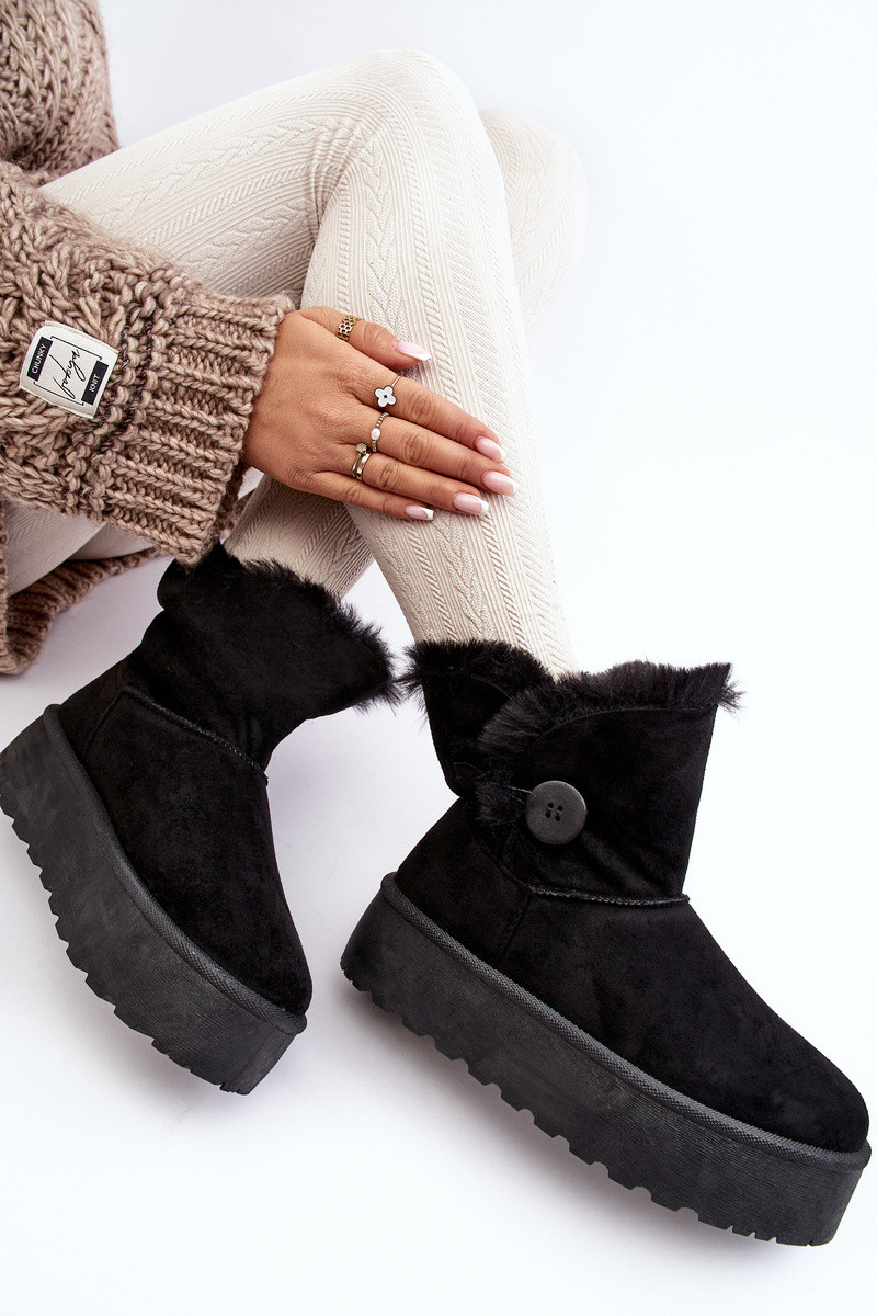 Sieviešu sniega zābaki ar platformu un kažokādu melnā krāsā INikasem