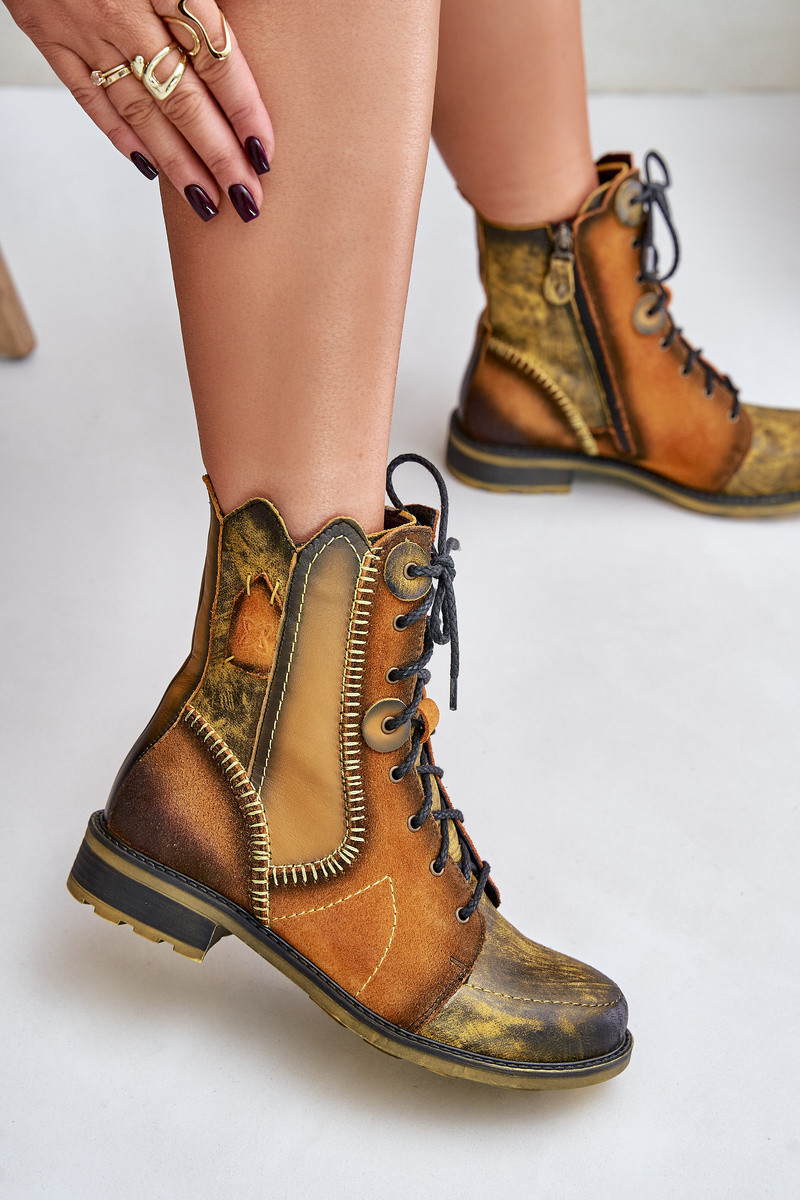 Ādas sieviešu zābaciņi ar platām papēžiem 06719-07 dzeltenā krāsā