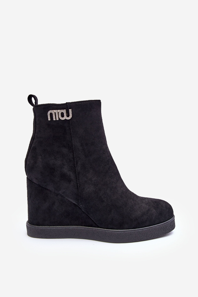 zamšādas siltināti Sieviešu puszābaki Uz Ķīļa ar ornamentiem melnas krāsas Vere