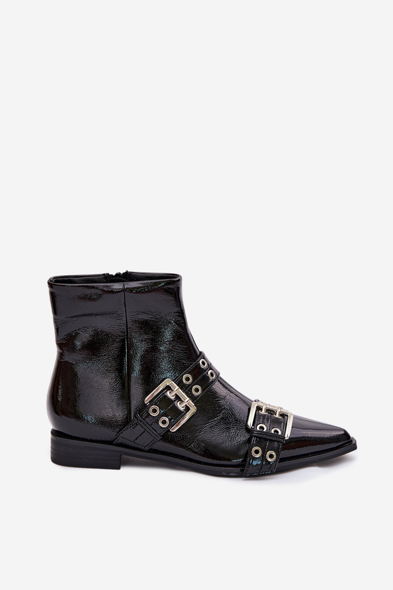 Sieviešu zābaki ar lakotu efektu un platām papēžiem melnā krāsā Hamira