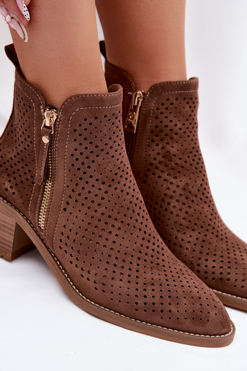 Ažūri sieviešu zābaki ar papēžiem Vinceza 58621 brūnas krāsā