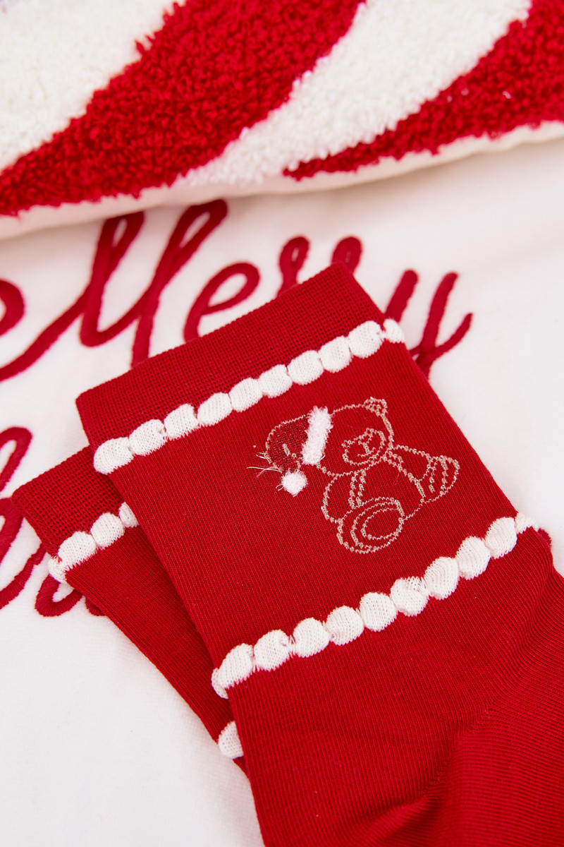 Sieviešu Ziemassvētku zeķes ar lāci un Ziemassvētku vecīti sarkanā krāsā