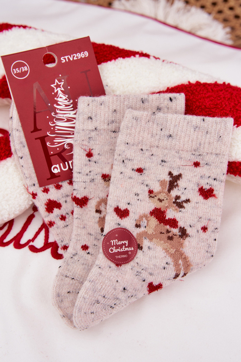 Zeķes Sieviešu Christmas Ar ziemeļbriežiem I Sirdismi INełna Alpaka Pelēkas krāsas