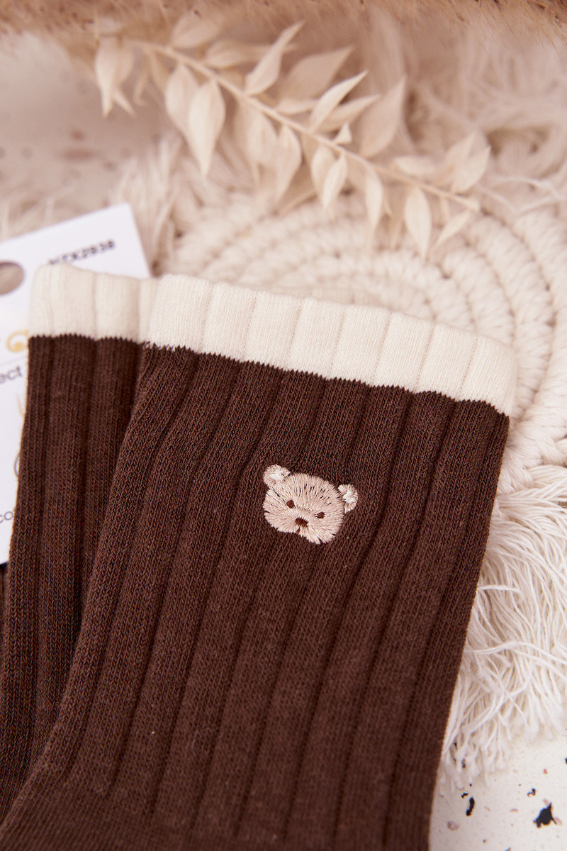 Sieviešu kokvilnas zeķes ar tūristu lāčiem, šokolādes krāsas