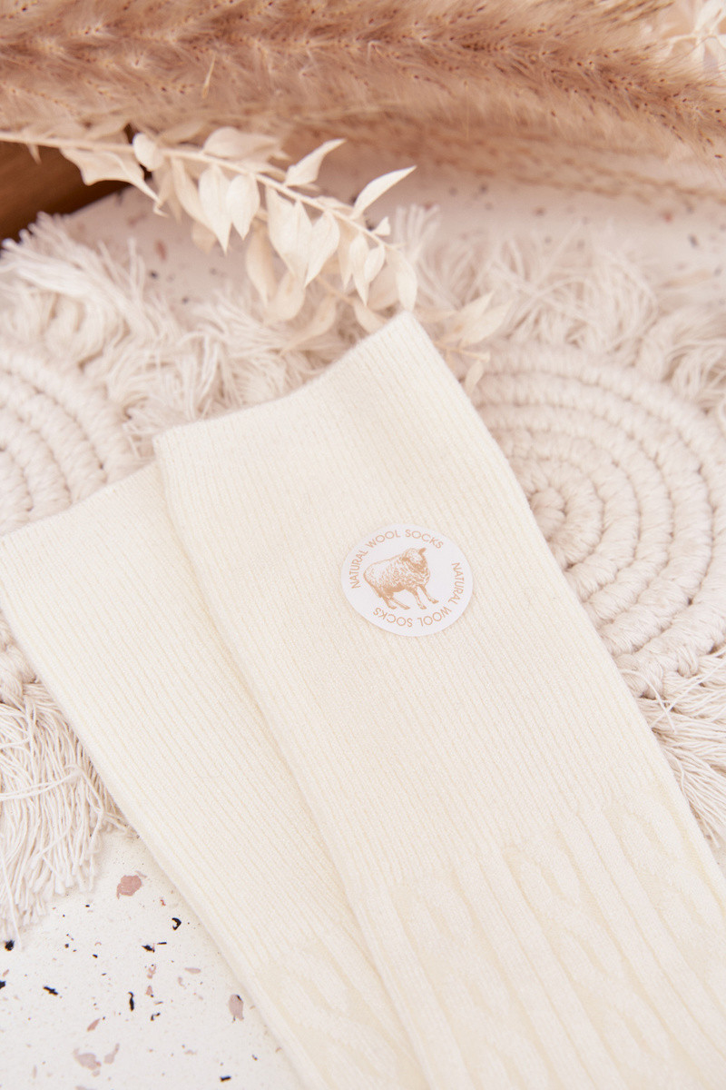 Garas sieviešu vilnas zeķes, ziloņu kaula krāsā