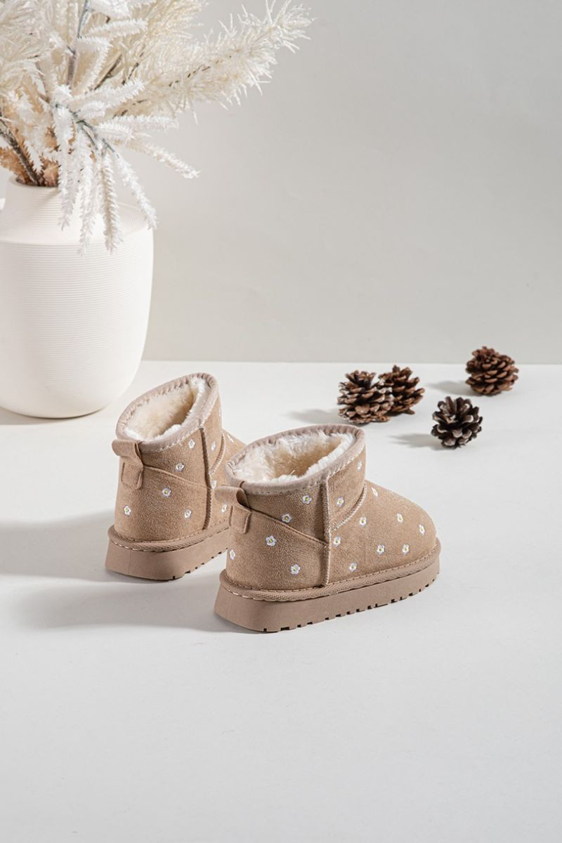 Bērnu sniega zābaki ar puķu motīviem Gracina smilšu krāsā