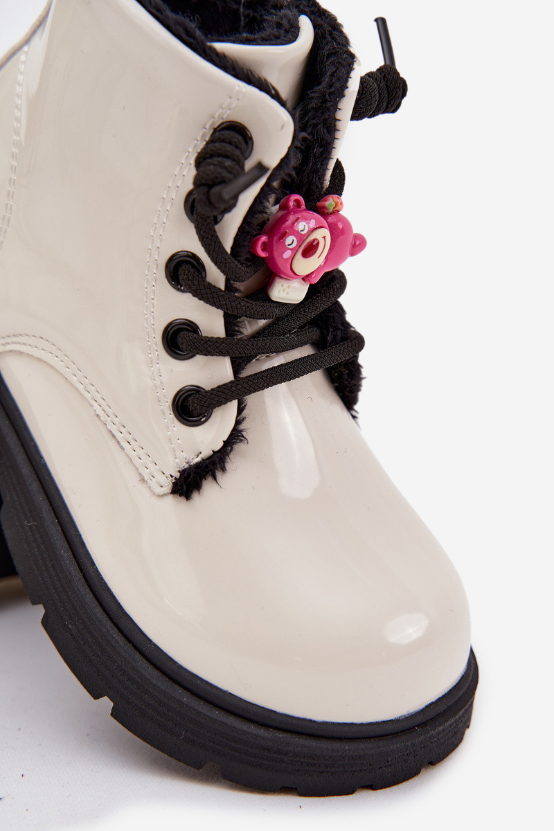 Bērnu siltie zābaki baltā krāsā ar lakota efekta un lāča motīviem Jovellea