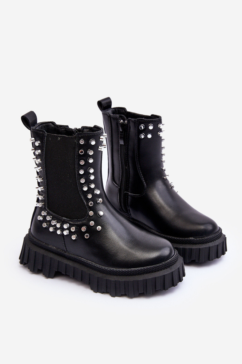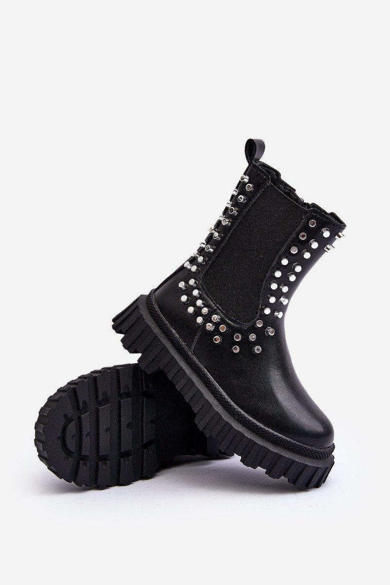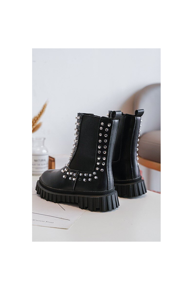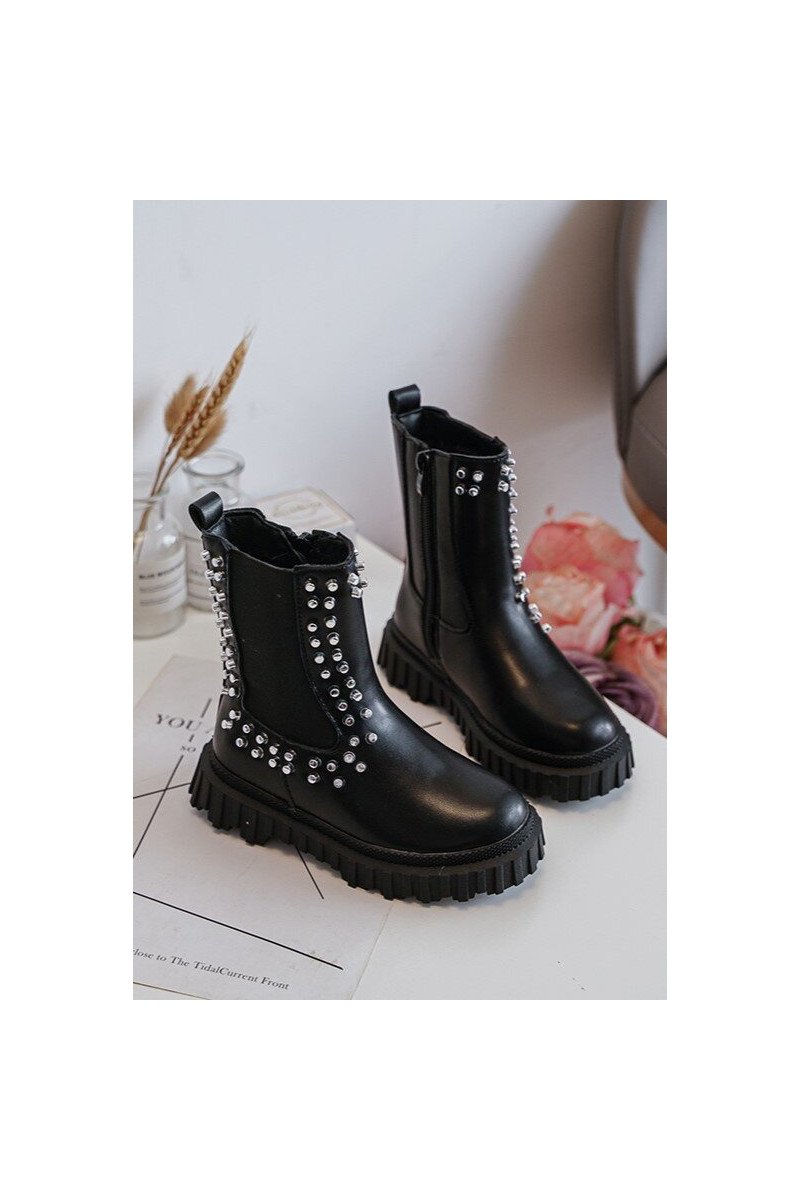 Stilīgi melni bērnu zābaciņi Adelie, dekorēti ar kristāliem